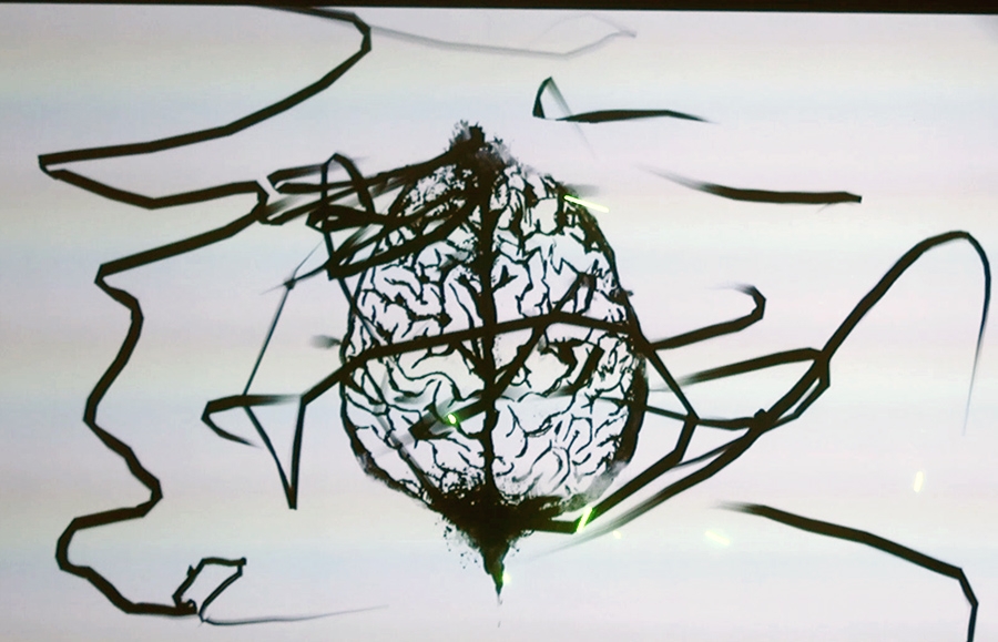 Le pointeur laser est un pinceau qui vous permet de dessiner, au son d’une voix off racontant l’histoire d'un artiste... Musique au piano, univers très graphique, en noir et blanc, pour une expérience collective poétique et émouvante.